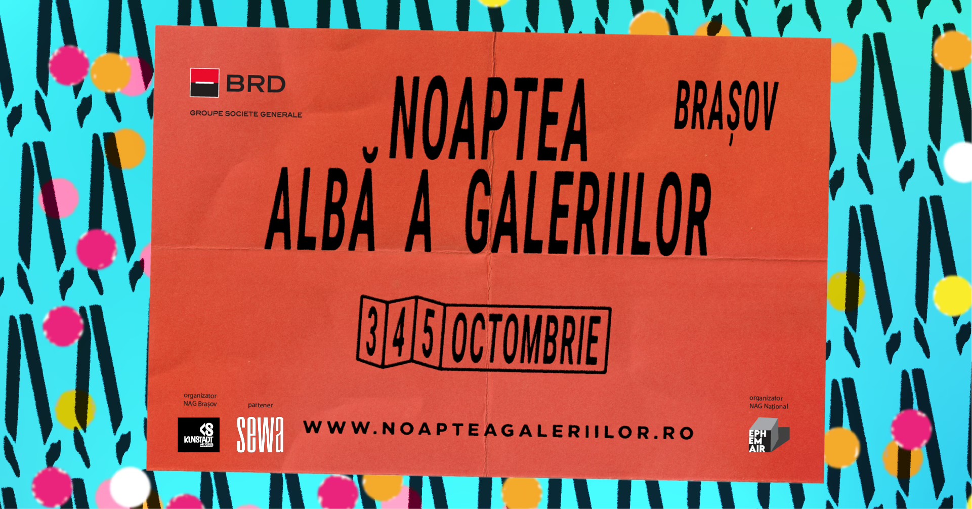 NAG Brașov este organizat local de Asociația Culturală KunSTadt în parteneriat cu SEWA, în cadrul unei rețele naționale coordonate de Asociația Ephemair, cu sprijinul BRD – Groupe Société Générale, partener principal NAG 2025.