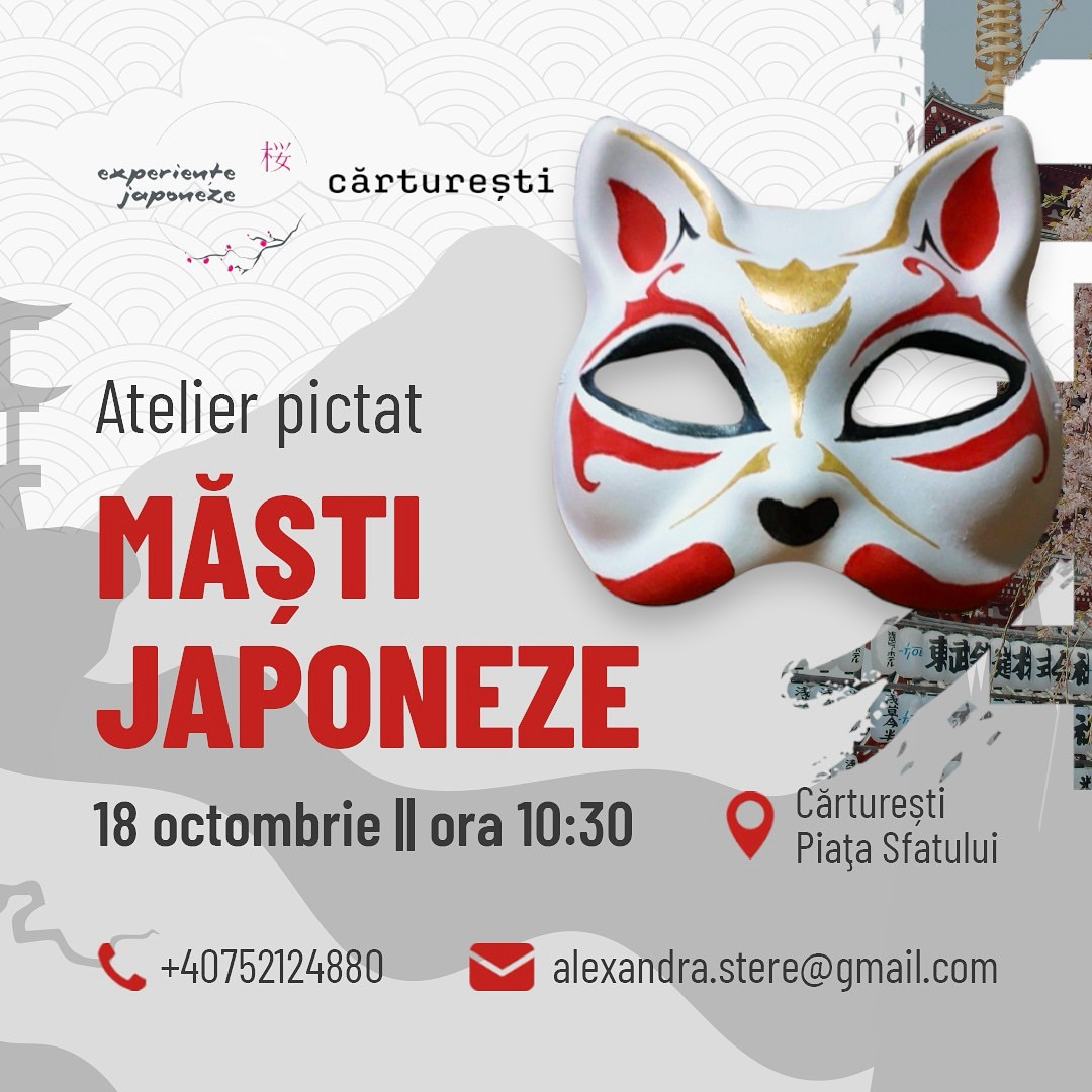 Sâmbătă, 18 octombrie, ora 10:30, la Cărturești Piața Sfatului, vom descoperi tradițiile de Haloween 🎃 în Japonia și ne vom personaliza 🎨 propria masca de vulpițǎ🦊 destinată acestei sărbători